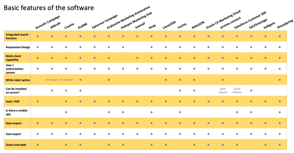 Not part of the market overview are tools like Marketo and Act-On. Unfortunately, the companies have not participated in the software comparison to date. Perhaps that will change with the next update.